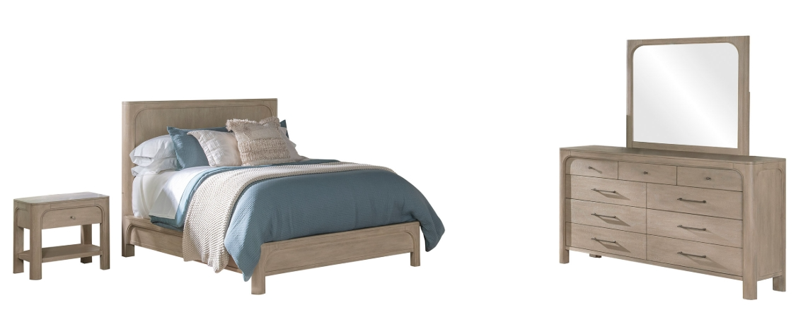 Includes: One (1) queen bed, one (1) nightstand, one (1) dresser, and one (1) dresser mirror