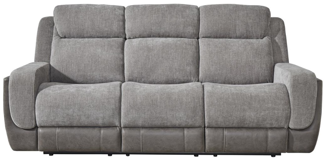 The Corinthian Furniture Jenner Afton Gray Power Reclining Sofa features power recline, a power headrest, and a dropdown console for added convenience. Upholstered in Afton gray fabric, it offers exceptional comfort with adjustable seating and headrest positions, perfect for relaxation and entertaining in style.Read More