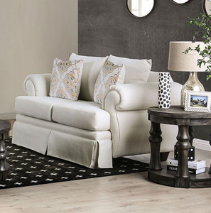 An ivory upholstered sofa collection looks clean and refined. It might not be the best choice when kids or pets are around but if you prefer to use your living room for quiet meetings, or mature groups this is an eye catching collection. Every facet adds to the delicate look, rolled arms, t-cushions, and a skirted lining. Have a sit down and enjoy a book.Read More