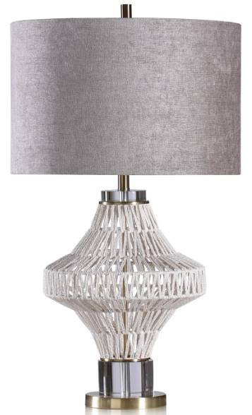 Include this table lamp in your living room or bedroom design, which features a rope body in a natural finish, a gold metal and crystal base, and a hardback shade. This table lamp will surely make a statement in your living room/bedroom design.Read More
