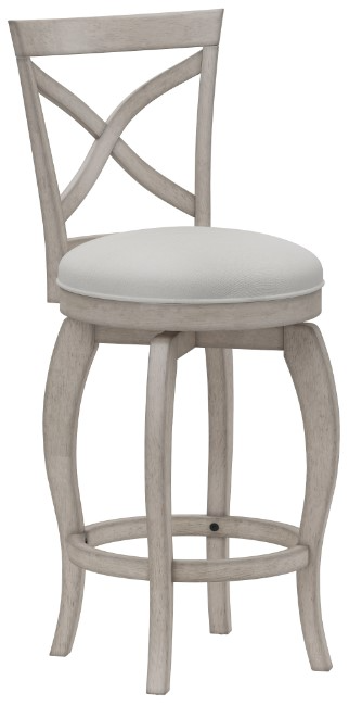 This casual transitional counter height stool is guaranteed to set a graceful and relaxed tone in your kitchen or dining area. The open-frame backrest shows off a curved X-shaped design, and the elegant, sleek cabriole legs are another central feature. Upholstered in an understated fog gray fabric.Read More