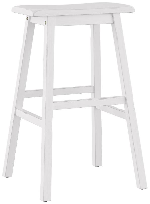A whimsical addition to any home, this antiqued backless bar height stool is shabby chic at its best, perfect for a coastal bungalow or cozy cottage alike. With a classic backless silhouette, the bar height saddle seat stool is constructed of sturdy wood featuring a sea white finish.Read More