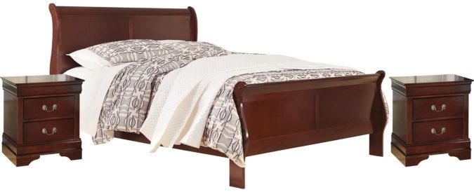 Includes queen headboard, footboard, rails and 2 nightstands