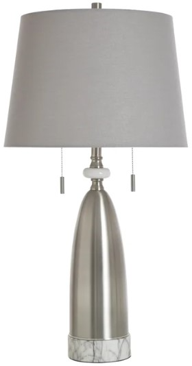 The StyleCraft table lamp exudes elegance with its sleek silver finish design. This stylish lamp features a sturdy base with clean lines, complemented by a sophisticated shade that diffuses light softly. Perfect for living rooms, bedrooms, or offices, it adds a touch of sophistication and ambient lighting to any space.Read More