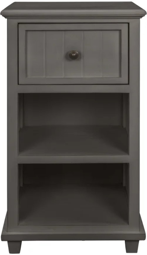 Update your living space with style and functionality by incorporating this side table into your home. Shown in a vintage gray finish with one drawer and two shelves. This stylish piece is a perfect way to refresh your room's look.Read More